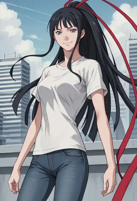 Her outfit from Chapter 160 of the manga is usable as well, though it has a large preference for her coat being open (even though it wasn't open). Using dynamic pose gives a better chance at the coat being closed.