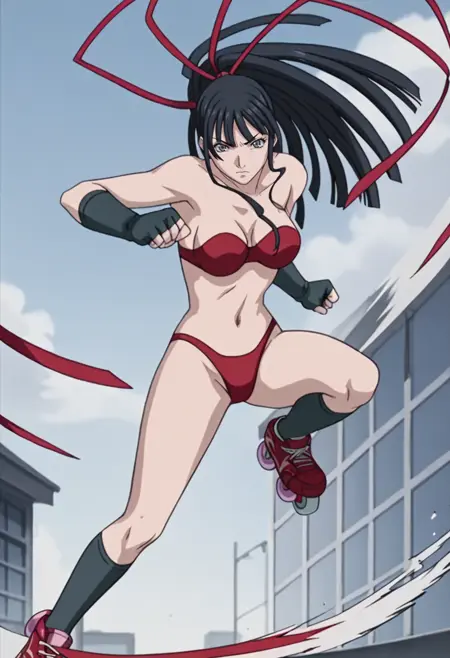 General Outfit (common to all): hair ribbon, red ribbons, black gloves, fingerless gloves, black kneehighs, red airtrecks, red roller skates