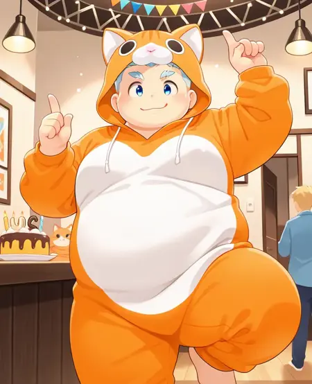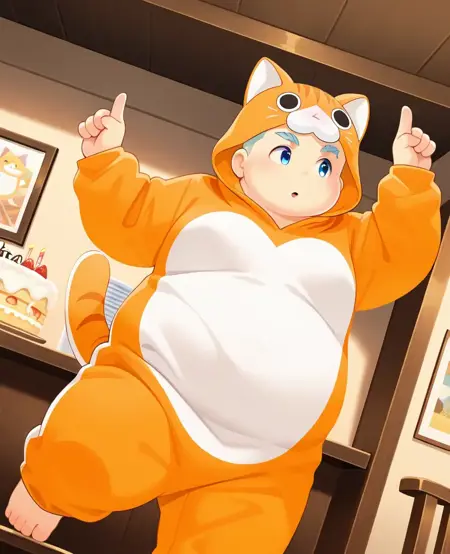 Negative prompt: extra fingers, ribbon, bow, compression_artifacts, green_pixels, noisy_background, two-tone skin, artifact, color_bleed, compression_artifacts, chromatic aberration, pixelated, fusion clothes, tits, breasts, pectorals, bara, muscular, muscle, obliques,