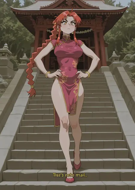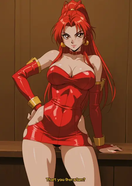 Mai /(maifftmp,red hair,MaiRD,red microdress,hip vent/)