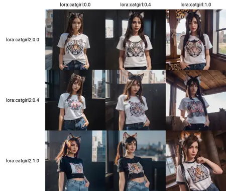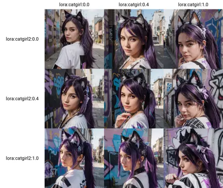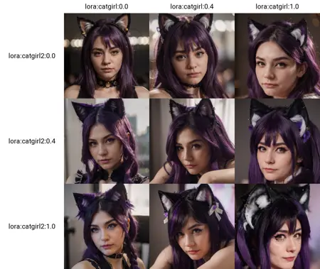 このLoRAは、それ以外では猫の耳を生成できないチェックポイントでも猫の耳を生成できます。