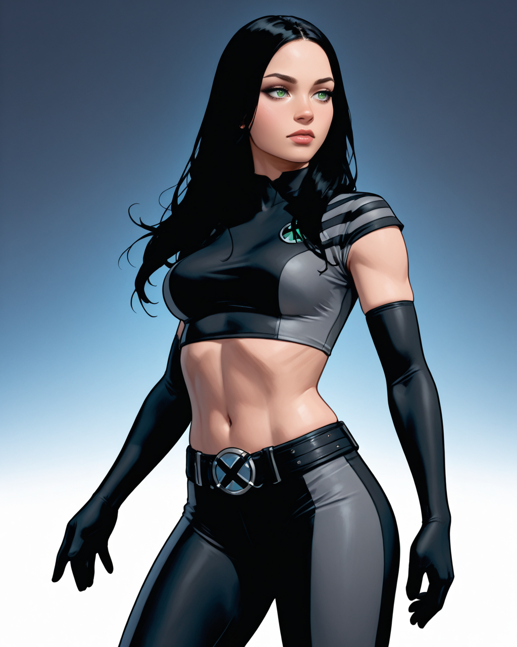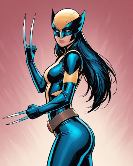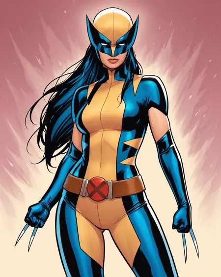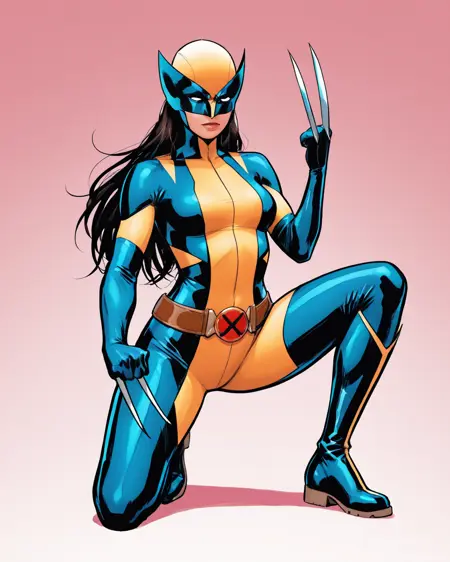 All-New Wolverine: x23allnewwolverine, 1girl, long hair, black hair, bodysuit, belt, gloves, mask, boots