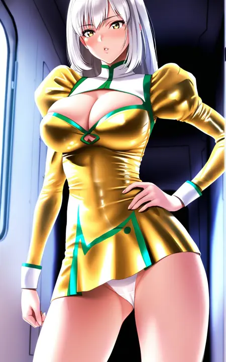 ゴールドデルモス:「黄色のドレス」(ジャケットとスカートではなく);「胸元の切り替え」