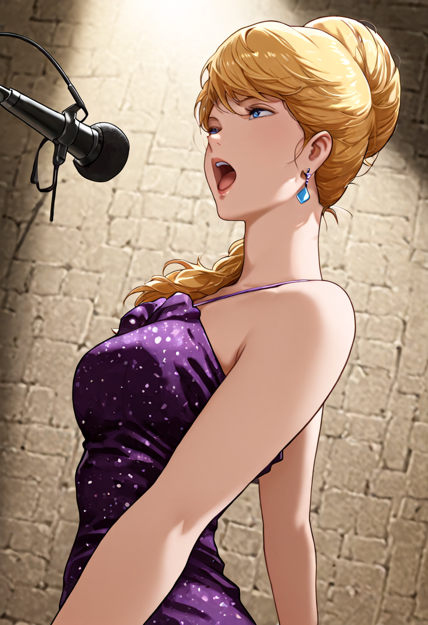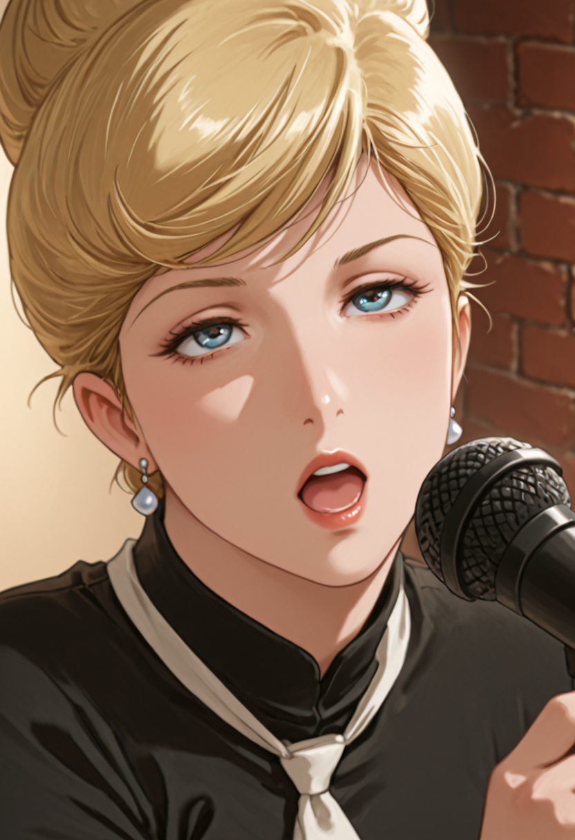 안정화를 위한 기본 프롬프트: Blonde hair, single hair bun, blue eyes