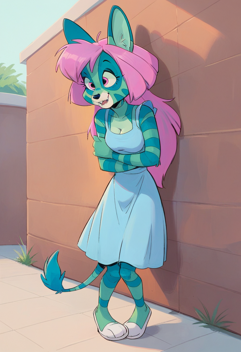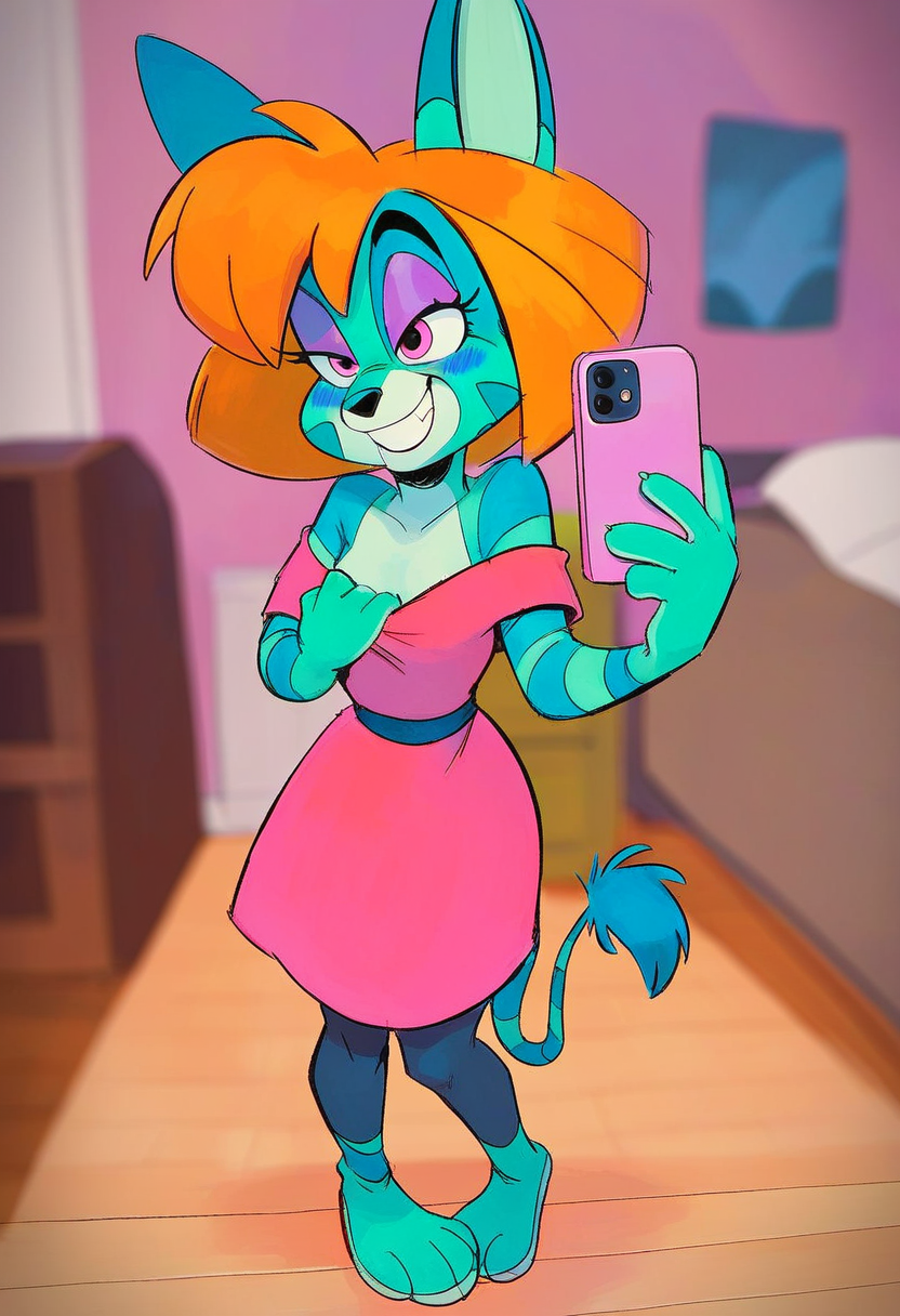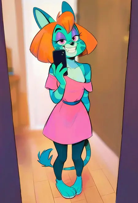 Lynx from the unused Disney pilot Warp Wilde. Character is of legal age, not a minor. For better pupils use the Negative prompt crazy pupils.