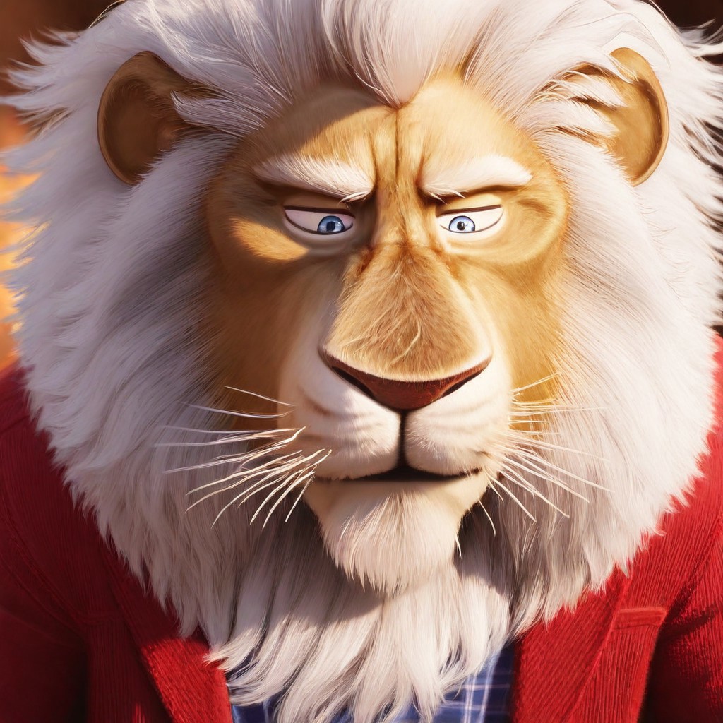 | 학습된 단어 | Calloway, furry male, solo, older male, lion, blue eyes, whiskers, animal ears, white hair, facial hair, tan fur, white mane, white eyebrows, thick eyebrows, red coat, blue plaid button-up shirt underneath, blue jeans, brown belt, brown boots. black leather jacket, black jeans, black boots, 복사됨! |