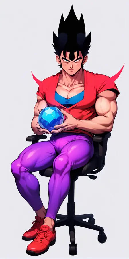 score_9,score_8_up,score_7_up,score_6_up,score_5_up,score_4_up,source_anime,1boy,solo,standard,spiky black hair,muscular body,red shirt,purple pants,red shoes,full body,simple background,(holding a blue crystal sphere in one right hand:1.1),The crystal sphere is in the right hand looking,