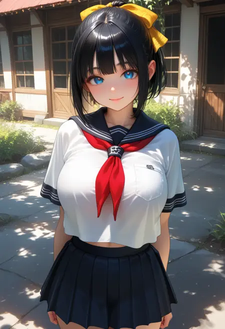 Please understand that I cannot attach various sample images because she is basically a character wearing a school uniform.