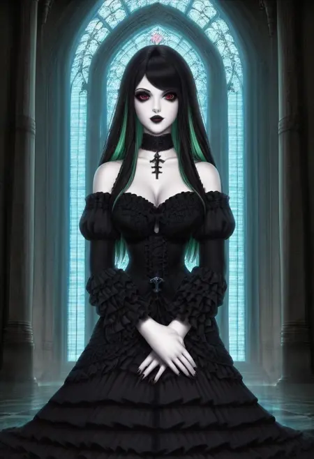 GothTwoTone is a style LoRA specializing in generating stunning gothic-themed women with striking two-tone hair (like blue-black, black-red, or custom splits). It merges dark elegance with vivid hair contrasts, perfect for creating: