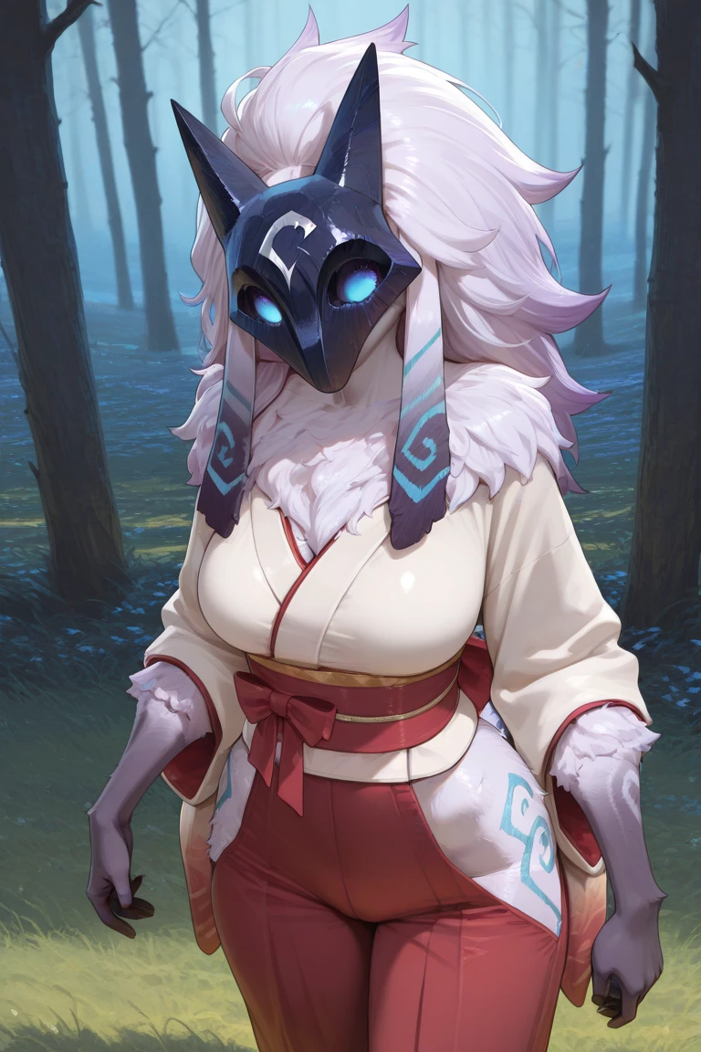 1girl, Kindred, anthro sheep, blue eyes, white hair, long hair, long ears, white fur, tail