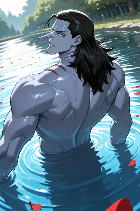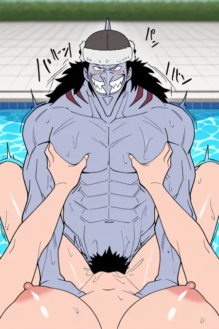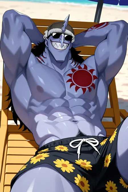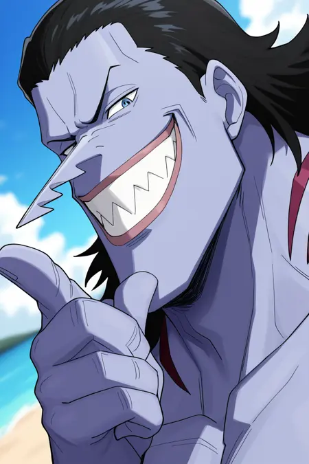 arlong-blue-skinned digimon (creature)-1male with spiked pointy nose focus,