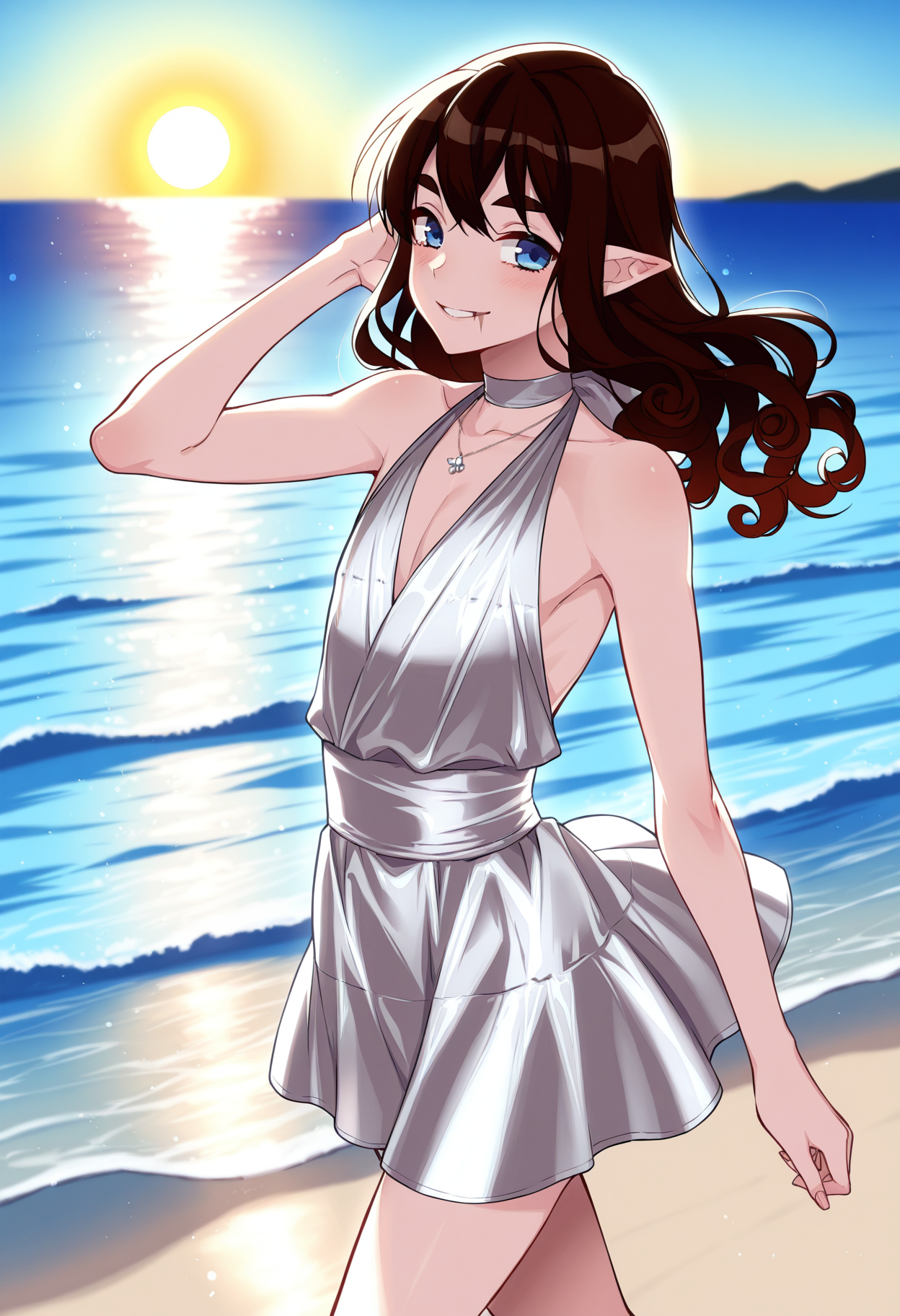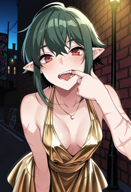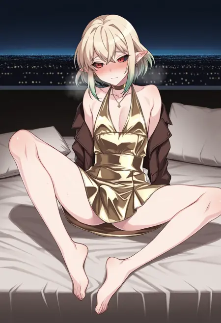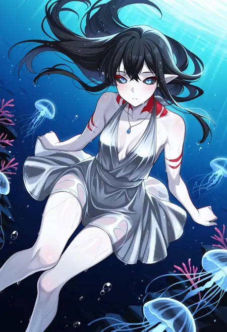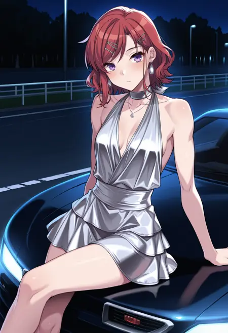 Triggered words: xgothsuit, dress, satin clothes, necklace, jewelry, neckhalter dress,