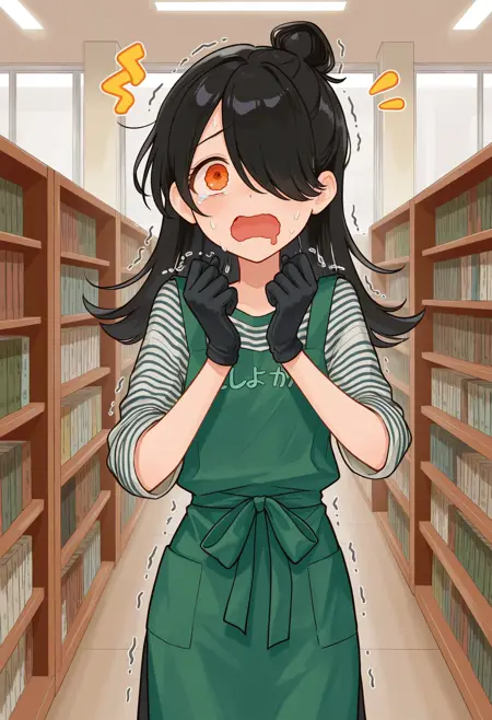 図書館の利用者だけではなく正規職員からも無茶振りをされがちで、変な泣き顔をしながら業務と戦っています。