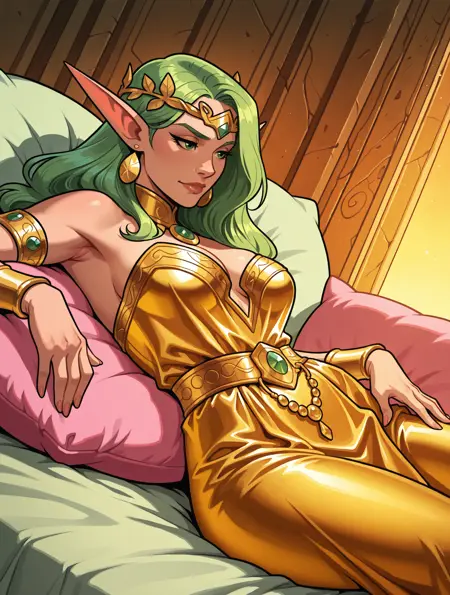ultradetailed, comicbook style, european, flat colors, green hair, complex lighting, seen from below, low angle, 1woman, hands on hips, strong perspective, short hair, elf, green eyes, hair over eye, velvet dress, angry, disgusted, long sleeves, black furcoat, short furcoat, antlers, looking around, orange sky, gothic city, fantasy, elven city, upper body, masterwork, masterpiece, best quality, complex lighting, dynamic pose, dynamic angle, western animation, hyperdetailed, strong saturation, depth快速负面提示词