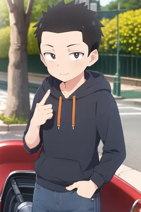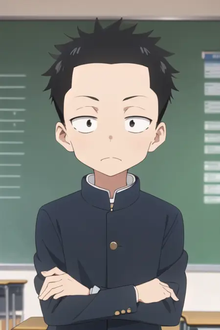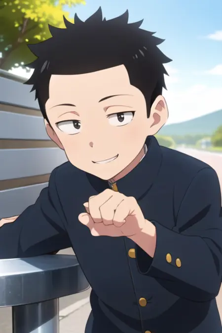 Chi's_Seatmate, 1boy, black hair, short hair, dot pupils