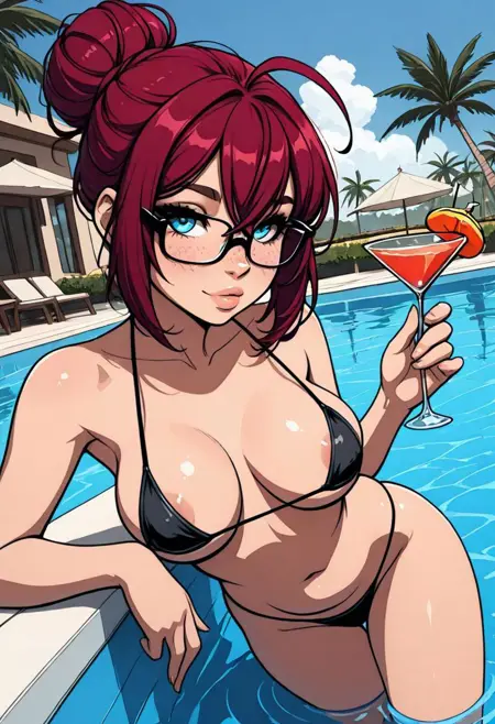 Stella is the ultra-sexy girl next door, with a playful geeky vibe and dangerously hot charm. With her deep red hair usually tied up in a messy bun, icy blue eyes behind thick glasses, and doll-like skin sprinkled with freckles, she’s the perfect mix of cuteness and unapologetic sensuality.