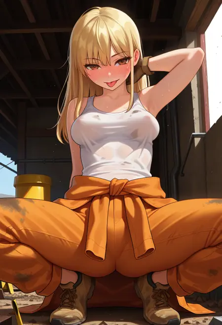 ouseww, brown eyes, blonde hair, long hair, medium breasts,