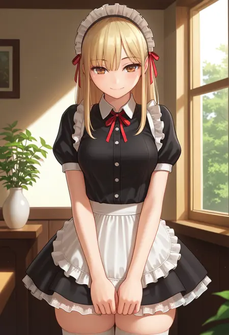 maid, bow, black dress, maid apron, pantyhose, mary janes,