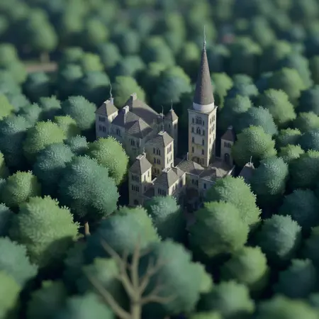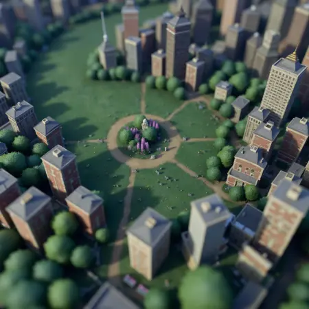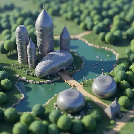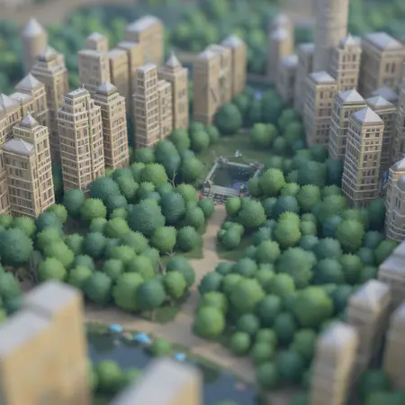 Supporting terms: isometric, tilt shift, village, depth of field, etc...