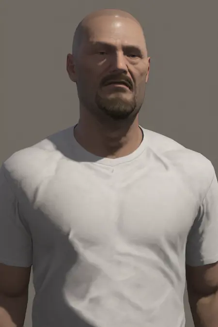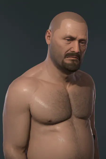 masterpiece, very awa, best quality,video game style,realistic ,1boy,solo,old,fat man,KDChanush,middle aged,short,black hair,beard