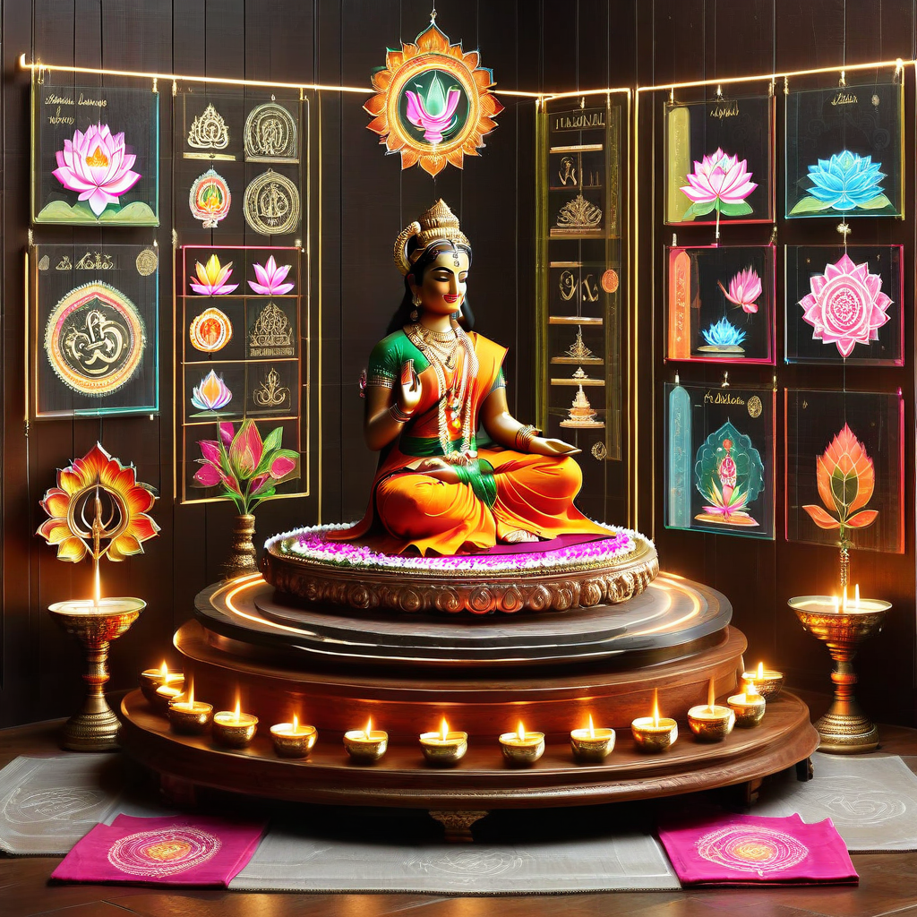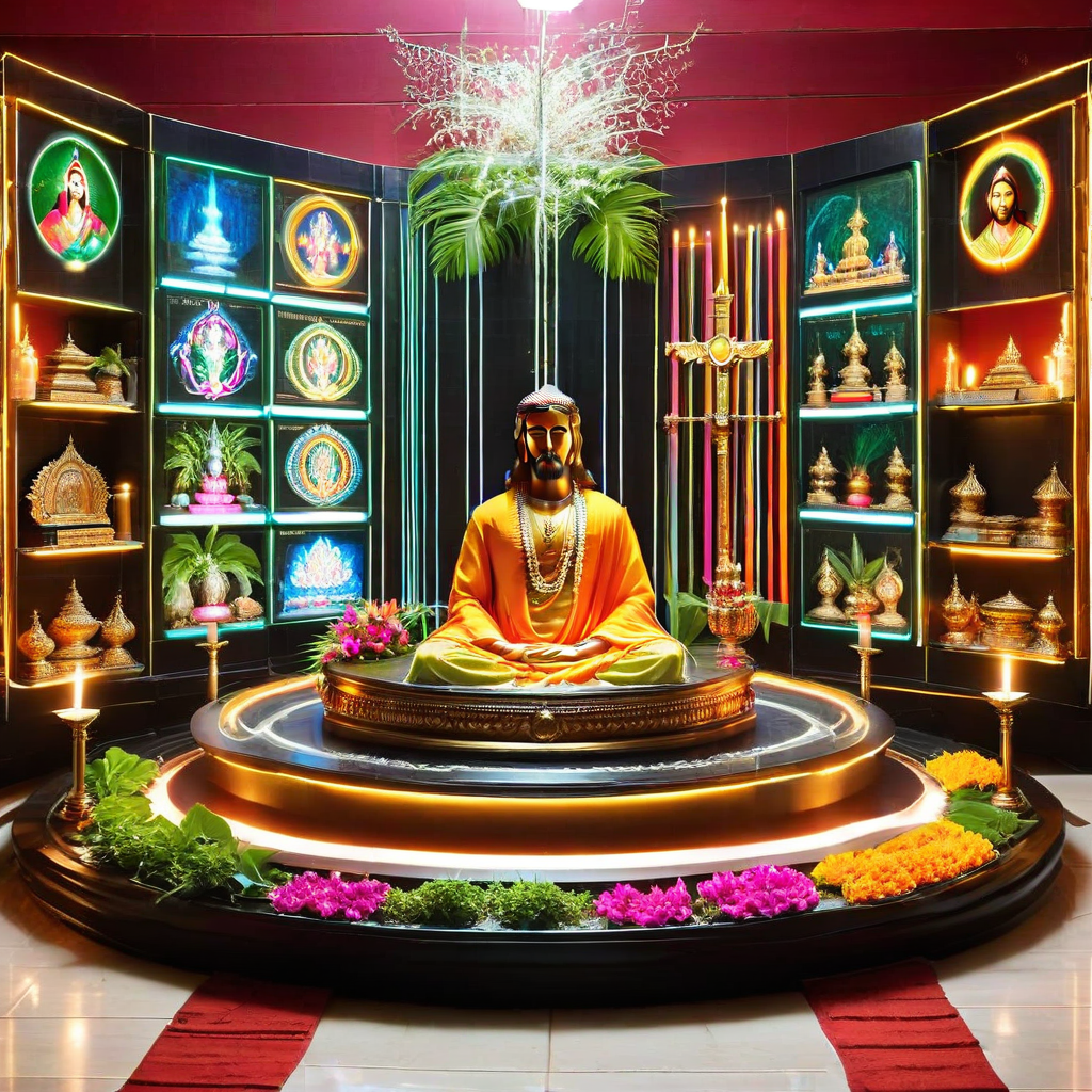 The "Hindu_Pooja_Room" LORA model generates high-quality, photorealistic images of futuristic Hindu Pooja rooms. It integrates traditional elements (e.g., deity idols, altars, ritual items) with advanced features (/model/377904/display-stand-xl) like holographic displays, smart lighting, and directional sound systems. The model supports various interior design styles (Modern, Rustic, Scandinavian, Bohemian, Tropical) and can depict specific deities (e.g., Lord Shiv, Goddess Lakshmi, Lord Ganesh, Lord Krishna) or even Christian prayer rooms (e.g., Lord Jesus) with customizable backgrounds (e.g., Milky Way, clouds, beach, ocean).
