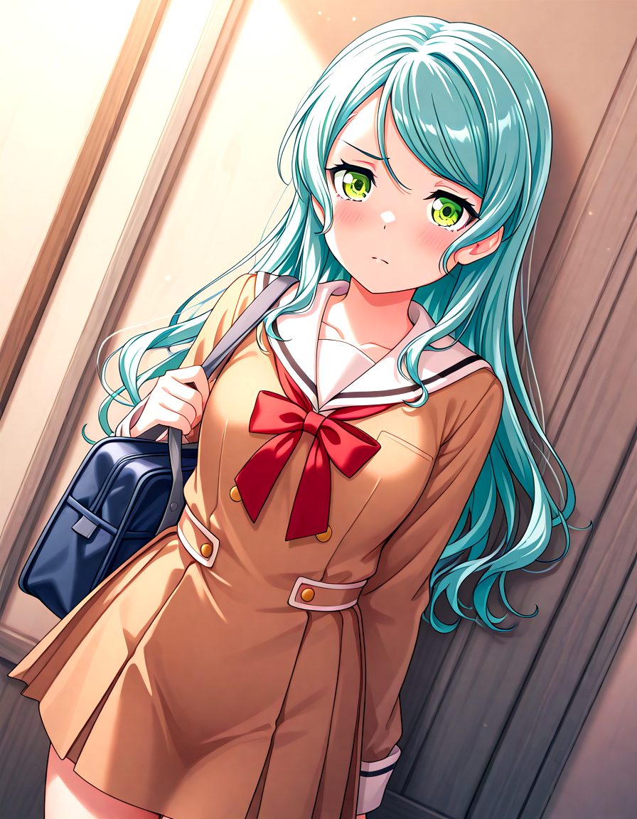 Hikawa_Sayo_Ban_Dori, long hair, aqua hair, green eyes, swept bangs