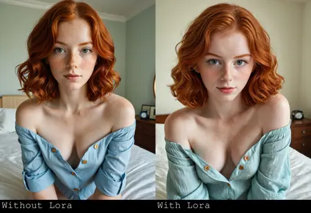일관된 태깅이 적용된 424장의 고품질 이미지로 학습되었습니다. "realistic", "freckles", "pale_skin" 및 "indoors"와 같은 조명 키워드를 포함한 프롬프트와 함께 사용할 때 가장 효과적입니다. 최적의 결과를 위해 권장 강도: 0.8-1.0.