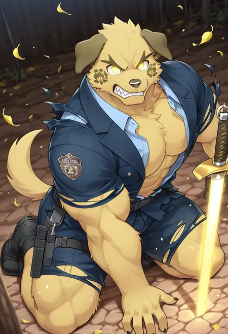 Reinforcement Prompts: "dog boy, furry, tail, yellow eyes, muscular, manly, large pectorals"