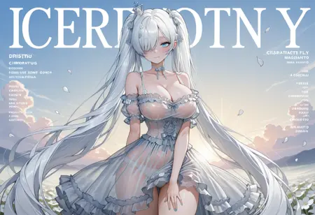 **Optional clothing衣服3:**disantao,absurdly long hair,bare shoulders,blue eyes,blue nails,bow,breasts,choker,cleavage,collarbone,crown,see-through dress,frilled dress,hair bow,twintails,hair flower,hair ornament,high heels,large breasts,mini crown,panties,ribbon,see-through,underwear,white dress,see-through white footwear,