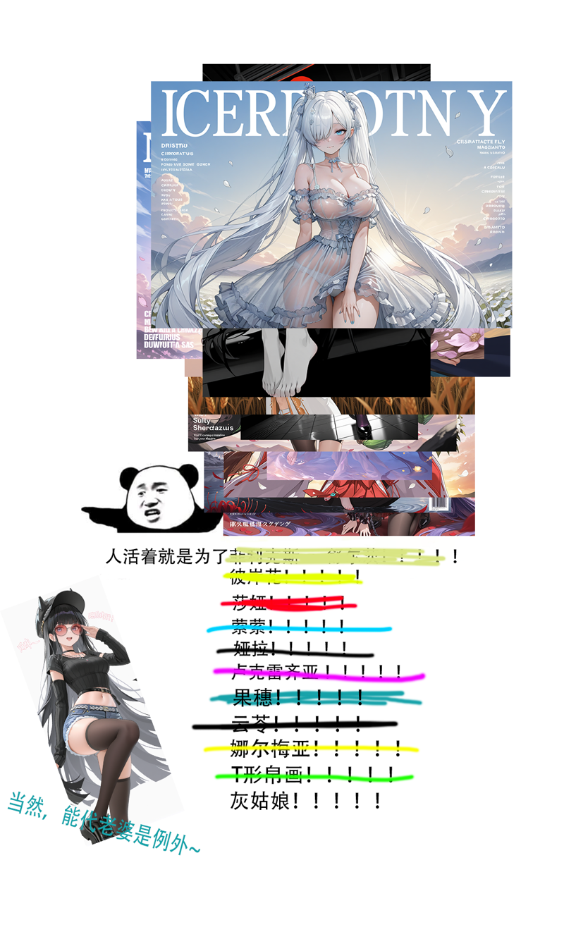 **Other options可选:**thigh gap,cellphone,sunglasses,unworn eyewear,