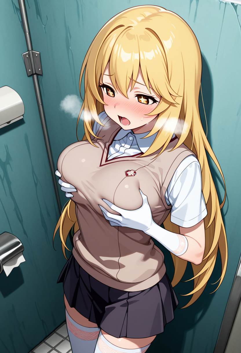 For those action scenes, people are in toilet stall, but the image doesn't have place for toilet. In illus, you still get a toilet with just "toilet stall" tag, and you don't need it