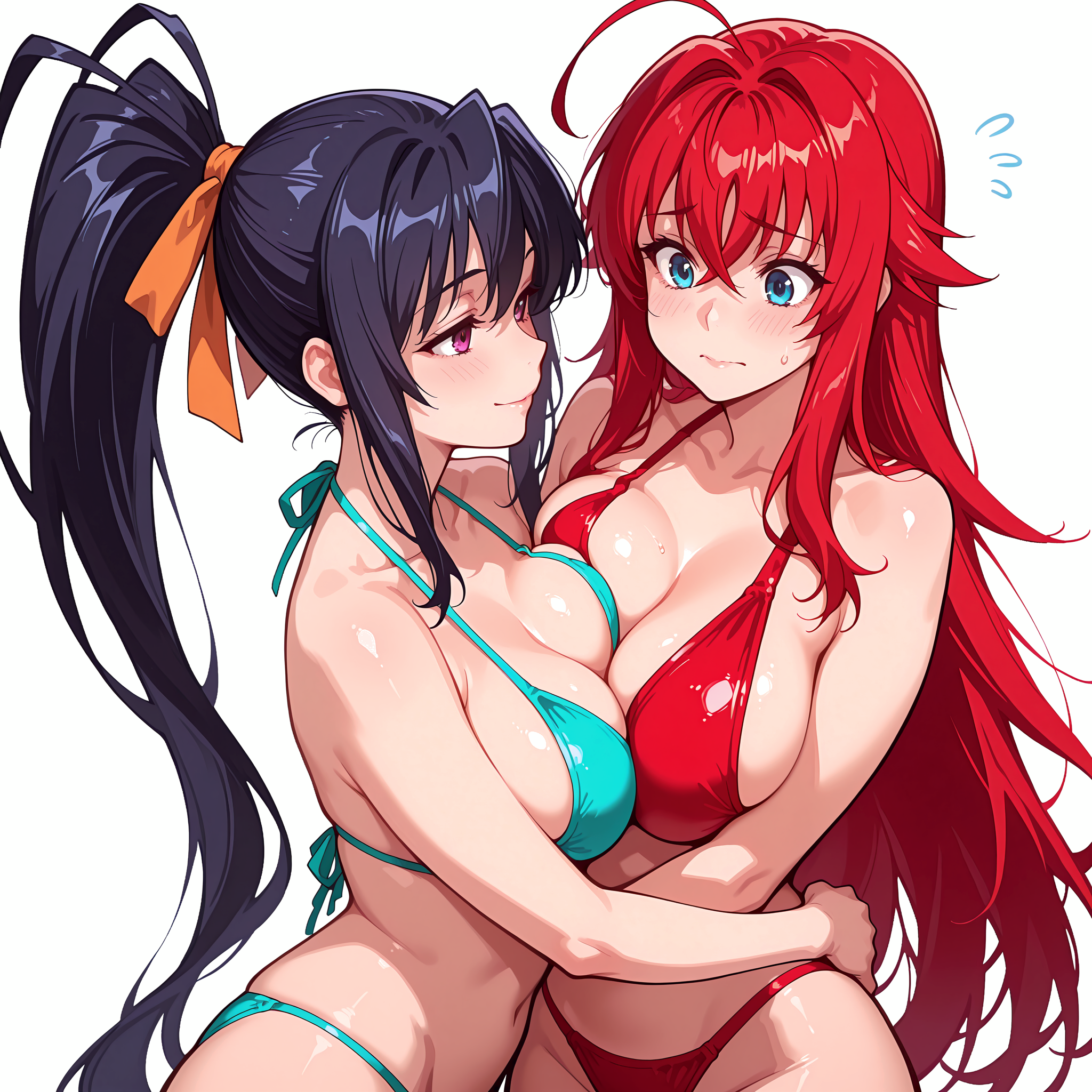 Mask 2 prompt: “4girls, blue hair, black swimsuit, confident pose, hands on hips”