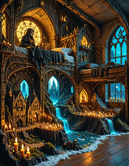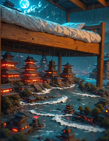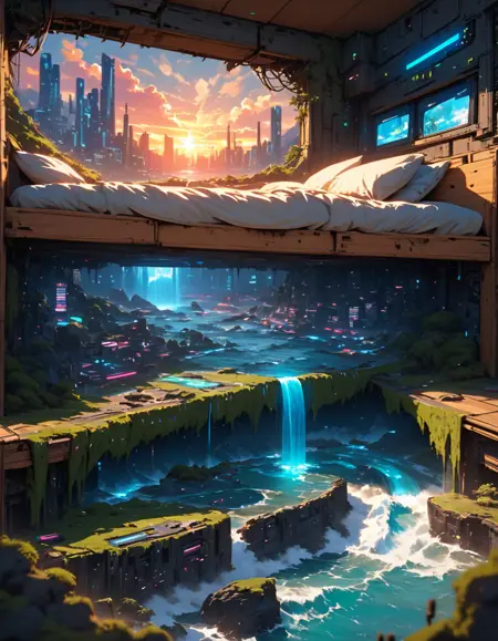ベッドの下にサイバーパンク都市(高速道路や湖あり/なし)
