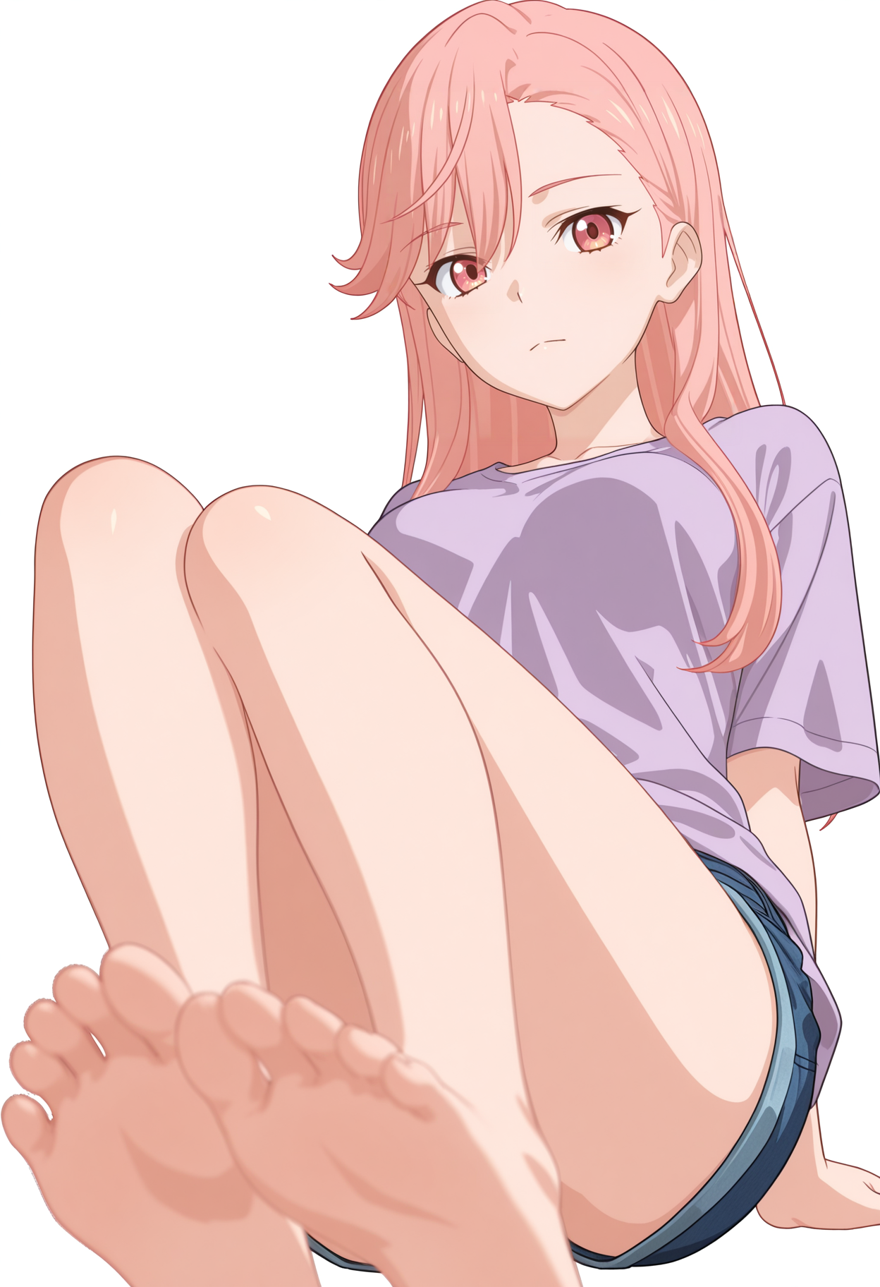 rmilo, 3d, long hair, pink hair, pink eyes, swept bangs, asymmetrical bangs, hair behind ear,