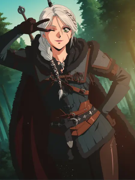 Appearance prompt: ciri_w4_philon, scar on face, white hair, green eyes, makeup, freckles, braid,