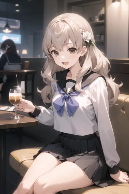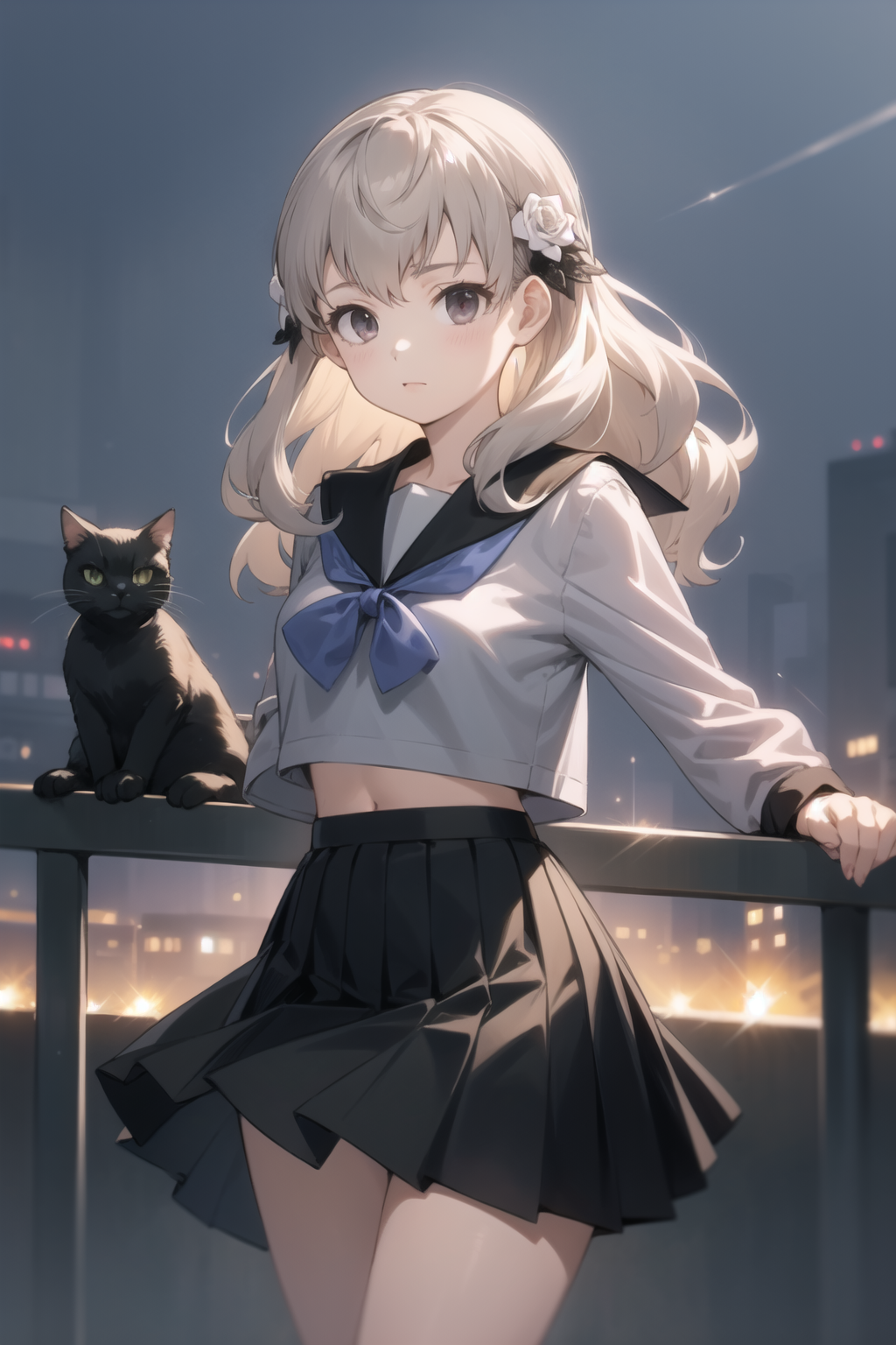 iorisentinel, serafuku, pleated skirt, hair ornament, hair flower, white rose