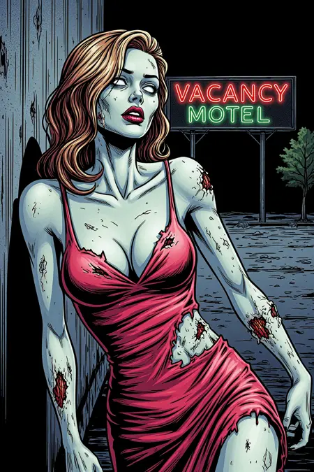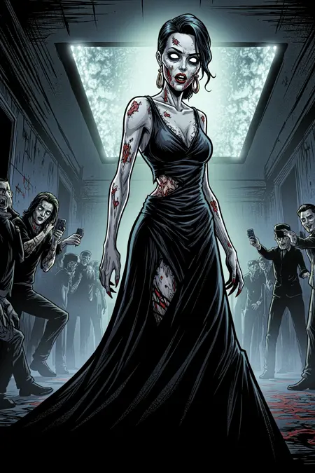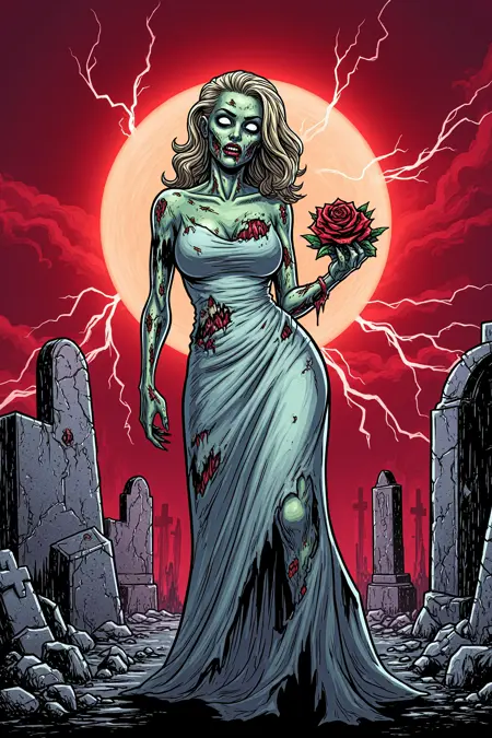 It fuses horror pulp grit, stylized decay, and glamour noir energy to capture that striking contrast between beauty and rot. This LoRA does not make monsters; it creates undead icons. She is the queen of decay: elegant, alluring, and terrifyingly irresistible.