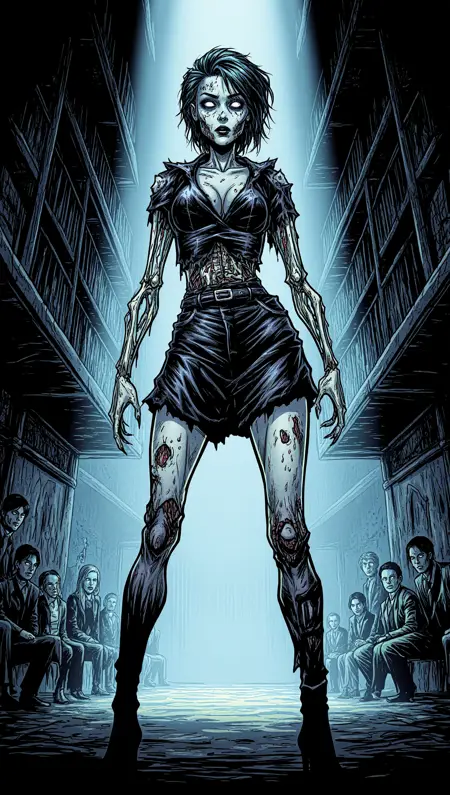 The Zombie Woman is confident and commanding — sensual in her own ruined way.