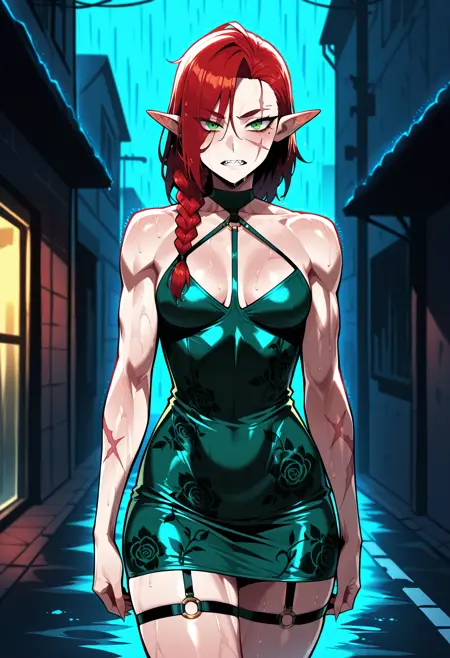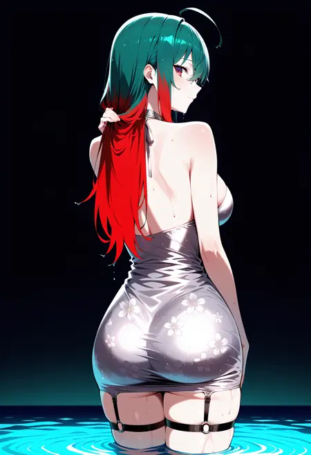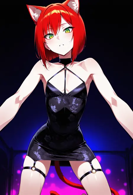 触发词:ghoticmicrodress01, micro_dress, short dress, gothic dress, halter neck dress, garters, floral print, velvet dress, o-ring, thigh strap,