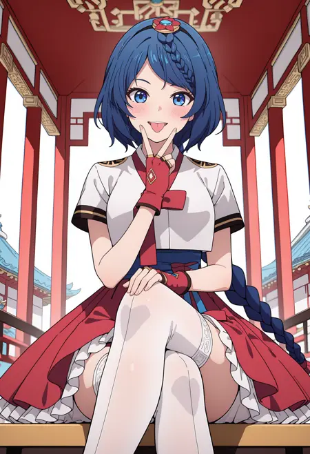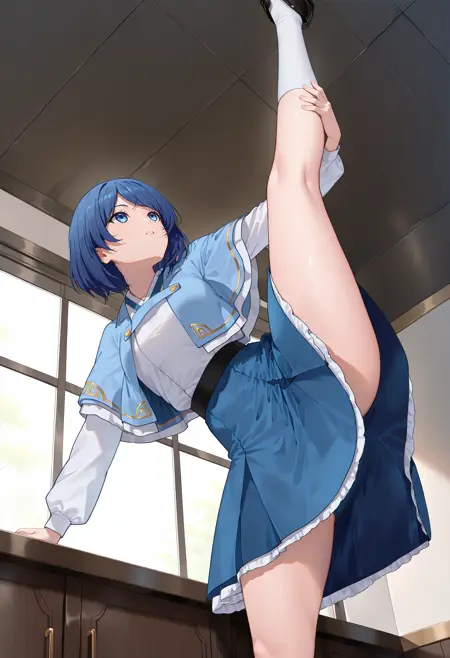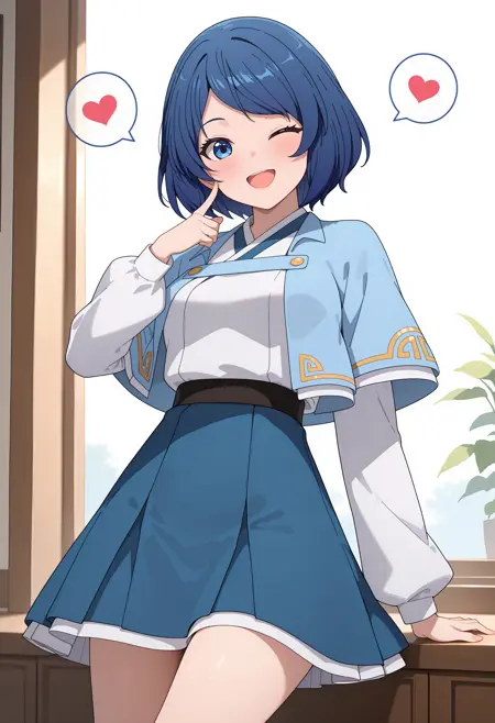 (Optional : blue pointed shirt, white pointed skirt)