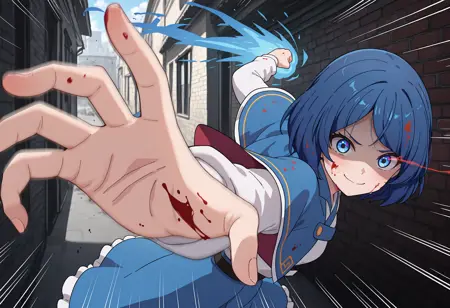 bsemi, blue hair, short hair, blue eyes, swept bangs,