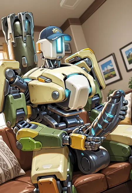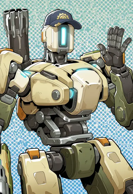 触发词(堡垒 OW2): b4sti0n_ow2, mecha, robot, arm cannon, baseball cap