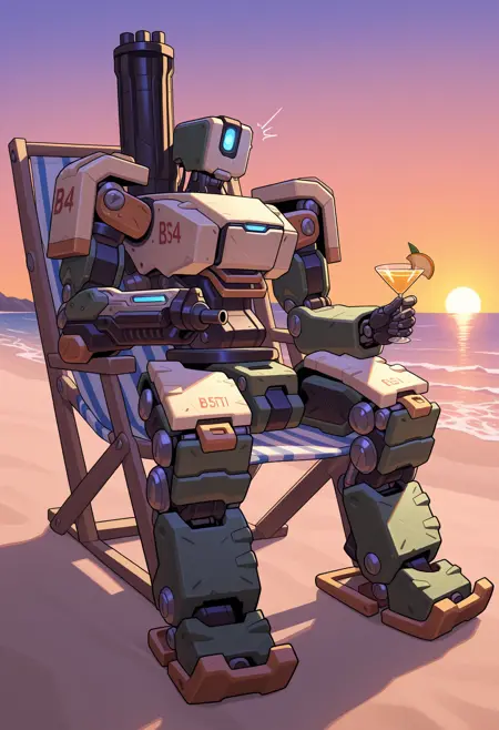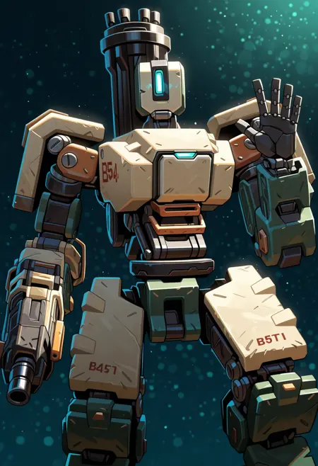 Trigger words (Bastion OW2) : b4sti0n_ow2, mecha, robot, arm cannon, baseball cap