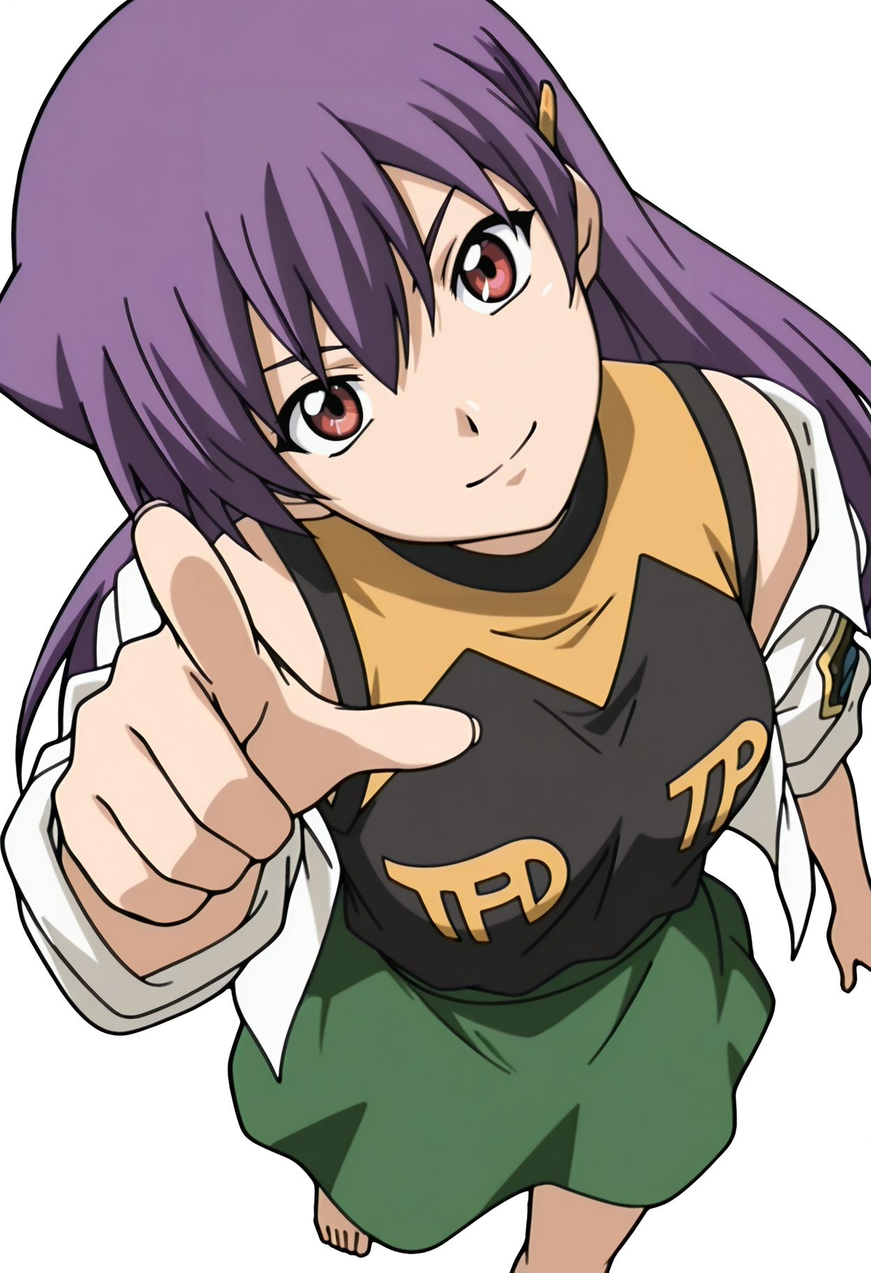 kfutaba, long hair, purple hair, hairclip, red eyes,