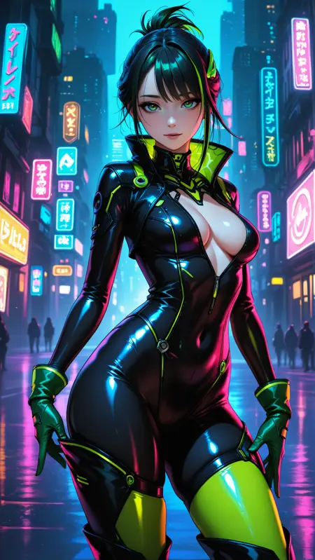 IllusoriaX は、リアルな解剖学と滑らかな光沢のあるテクスチャーを備えた、ハイパーディテールなアニメイラストを生成します。このモデルは、ラテックス、レザー、合成繊維の衣装に優れており、光沢と素材の深みを的確に表現します。顔はアニメスタイルを維持しつつ、ソフトで洗練された特徴を持ちます。照明はスタジオのような仕上がりで、滑らかなトランジションとリアルな影が特徴です。体の形状、曲線、ポーズには特に注意が払われています。粗野にならず、セクシーな美意識をサポートし、ダイナミックな構図や背景にも対応しています。スタイリッシュで魅力的な女性キャラクターの作成に最適です。