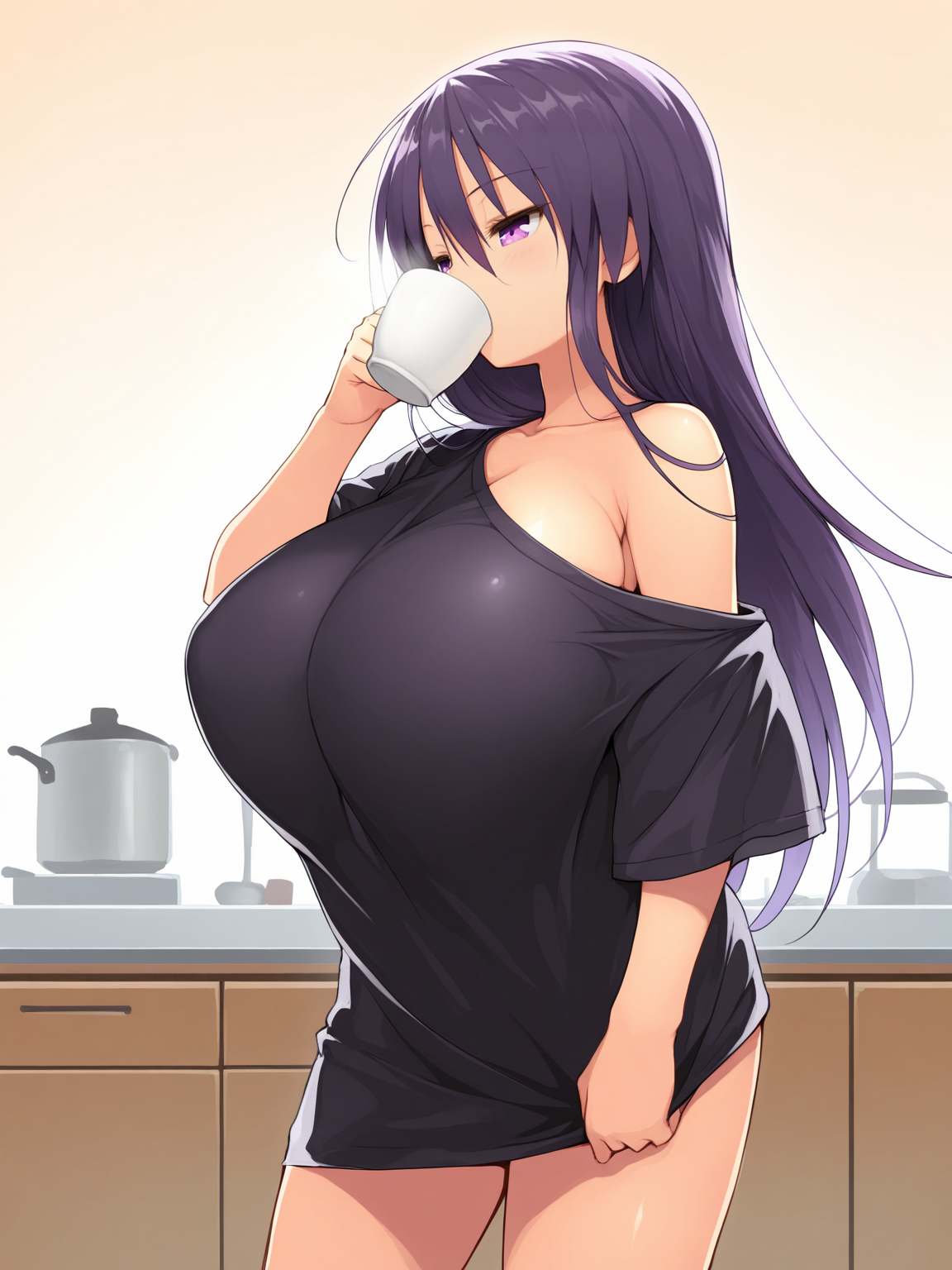 Apperance: majkaoru, long hair, purple hair, purple eyes, huge breasts