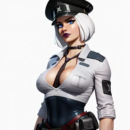 HildeSchmittendorf, 1girl, blue eyes, short hair, white hair, lipstick,