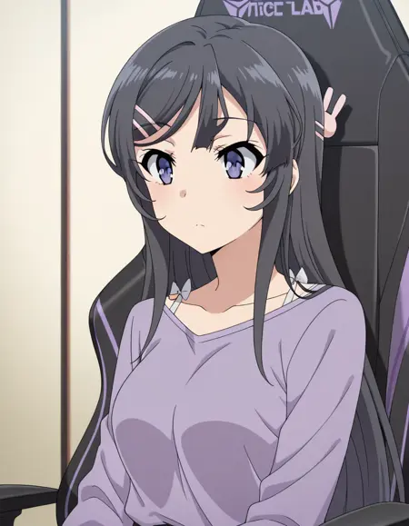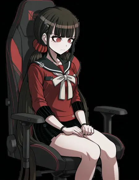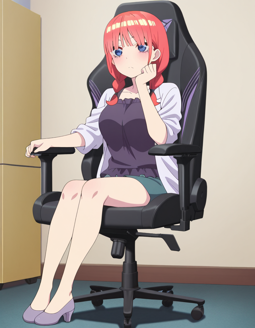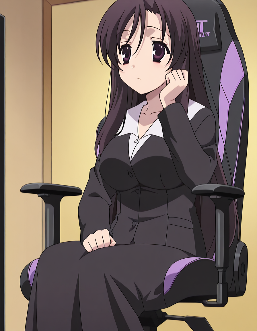 lora:secretlab-chair-illustriousxl-lora-nochekaiser:1, secretlab chair, chair, office chair, gaming chair, sitting, feet out of frame,