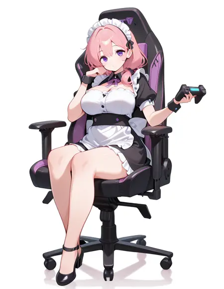 lora:secretlab-chair-illustriousxl-lora-nochekaiser:1, secretlab chair, chair, office chair, gaming chair, sitting, full body