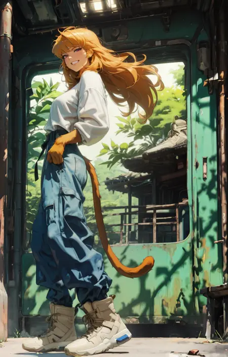 This LoRA blends elements from four iconic high-top sneaker silhouettes to generate stylized, imaginative footwear for anime characters and illustration.
